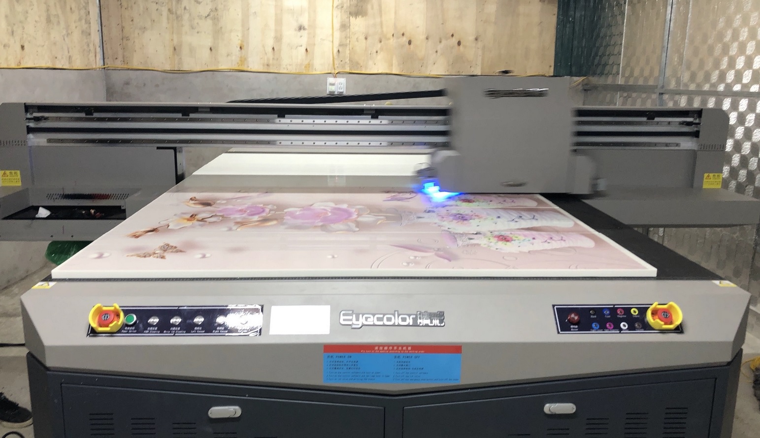 Máy in UV phẳng dạng LED in được trên các vật liệu dày cứng như decal 3M, mica, gạch men, kính,... mà không phải loại máy in nào cũng làm được.