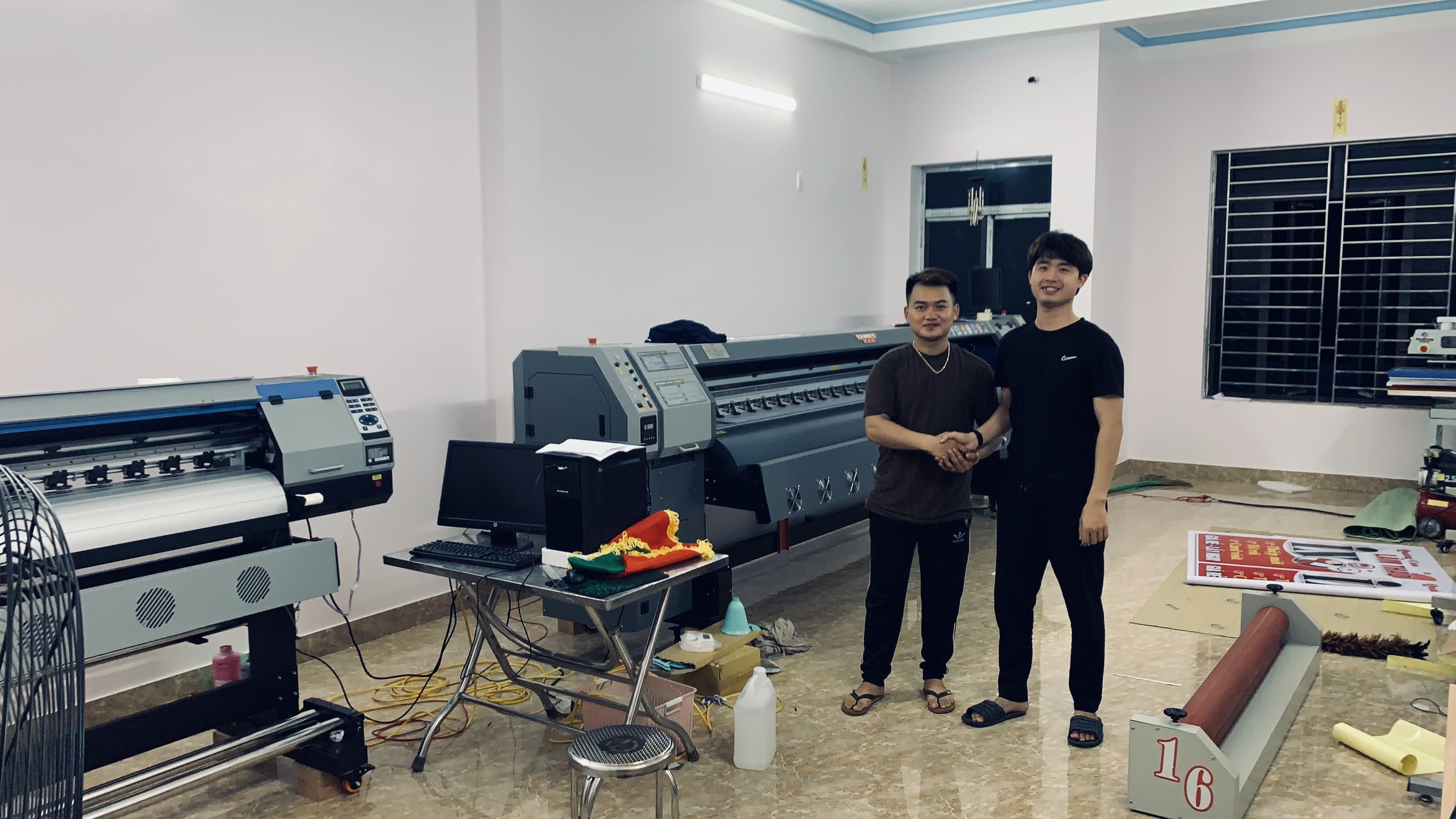 Hoàn thành lắp đặt và chuyển giao công nghệ cho anh Lâm nguyên 1 dàn máy: Máy in bạt khổ 3m2 T5S , máy in decal taimes 1m6, máy cắt CNC , máy cán tay ,máy cắt bế , máy ép thủy lực tại Xã Tràng Xá, Huyện Võ Nhai, Tỉnh Thái Nguyên