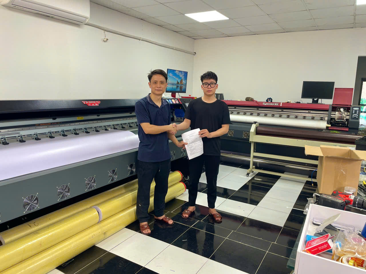 BÀN GIAO MÁY IN BẠT TAIMES T5S 3M2 VỚI 4 ĐẦU PHUN KONICA CHO QC VŨ HƯNG - PHÚ THỌ