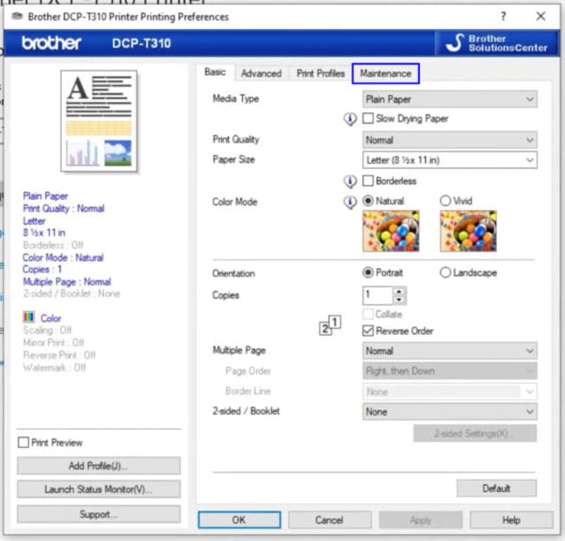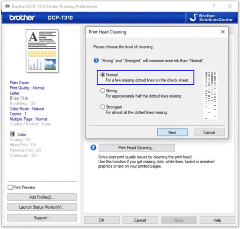 Cách 1: Vệ sinh đầu phun máy in Brother bằng tính năng tự làm sạch