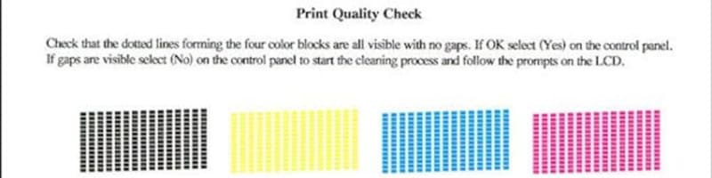 - Bản in xuất hiện sọc ngang, vệt trắng hoặc thiếu nét, các màu bị mất đoạn hoặc toàn bộ bản in bị nhòe thì khả năng đầu phun bị tắc hoặc bám bụi.