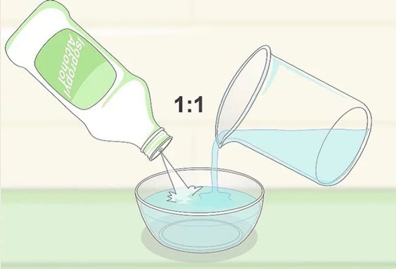 Bước 4: Trộn cồn Isopropyl với nước sạch theo tỷ lệ 1:1 để tạo dung dịch làm sạch an toàn.