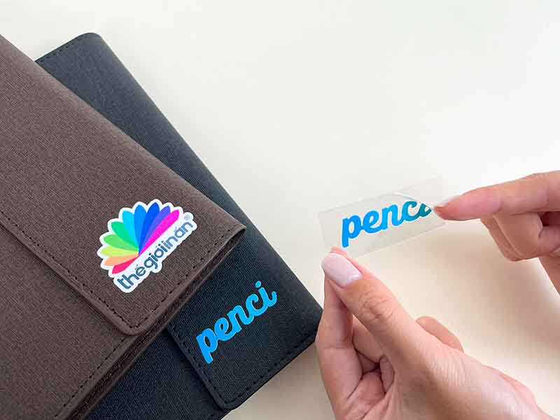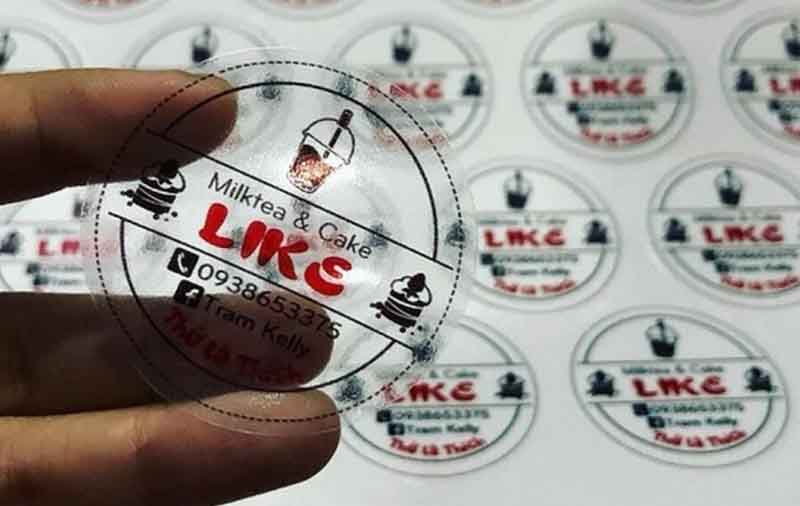 - In sticker – logo thương hiệu: Decal UV cắt bế theo yêu cầu được dùng làm sticker trang trí, tem truy xuất nguồn gốc hoặc logo công ty, đảm bảo hình ảnh sắc nét, thẩm mỹ và chuyên nghiệp.