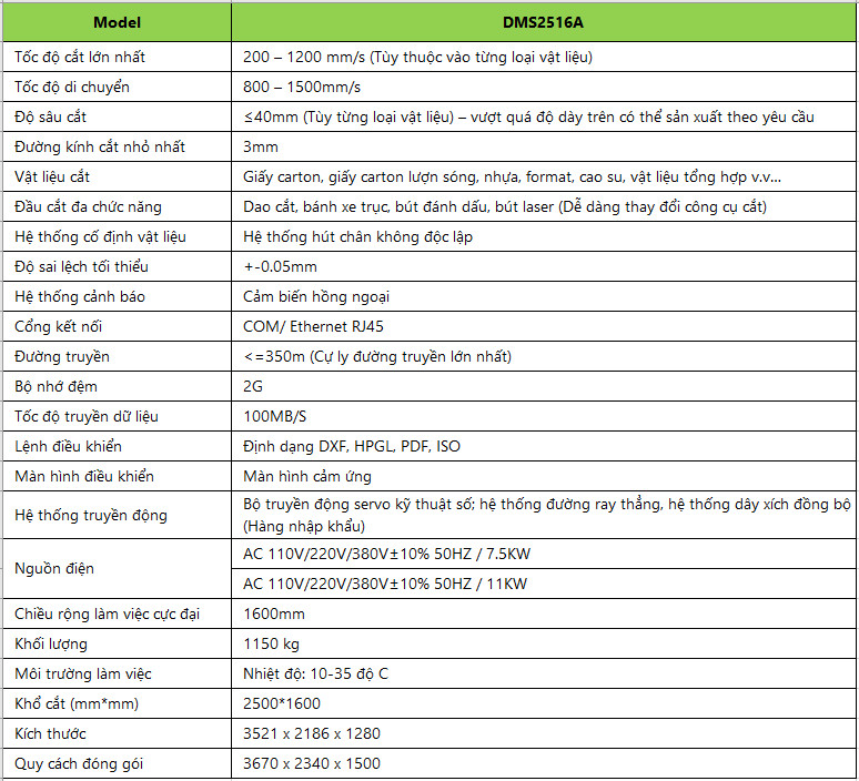 + Máy cắt kỹ thuật số DMS 2516A kết cấu khung máy chắc chắn, ổn định.