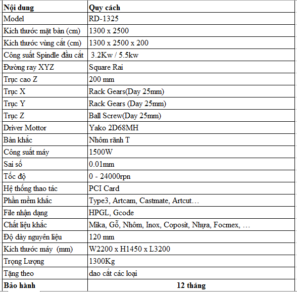Với bàn cắt 1300 x 2500mm phù hợp với khổ cắt của tât cả các nhà quảng cáo, nội thất. Máy sử dụng Driver motor Yako 2D68MH giúp máy hoạt động bển bỉ liên tục 24/7. Công suất đầu Spindle 3,2kw hoặc 5,5kw để bạn có thể lựa chọn dòng máy phù hợp với mình. Các ray dẫn to Square Rai với khung sườn được nhập khẩu từ Đài Loan vô cùng chắc chắn mang đến những đường cắt ngọt, chính xác tuyệt đối.