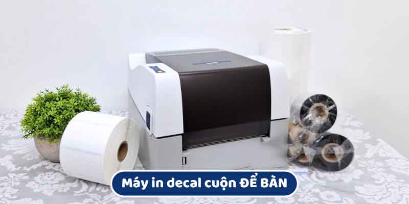 Máy in decal cuộn để bàn là loại máy có kích thước nhỏ gọn, phù hợp đặt trên bàn làm việc hoặc dùng trong shop, cửa hàng nhỏ, văn phòng. Dù nhỏ nhưng nó vẫn có khả năng in decal dạng cuộn, thường hỗ trợ công nghệ truyền nhiệt hoặc có thể chuyển đổi giữa truyền nhiệt và nhiệt trực tiếp.