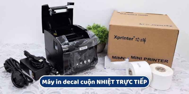 Máy in decal cuộn nhiệt trực tiếp hoạt động dựa vào phản ứng hóa học của lớp phủ nhiệt trên decal. Theo đó, khi đầu nhiệt chạm lên, lớp phủ đổi màu để hình thành chữ hoặc mã vạch, mà không cần ribbon. Ưu điểm là cấu trúc máy đơn giản, ít chi tiết cần bảo trì, không cần dùng mực ribbon, chi phí nguyên liệu thấp và vận hành nhanh gọn.