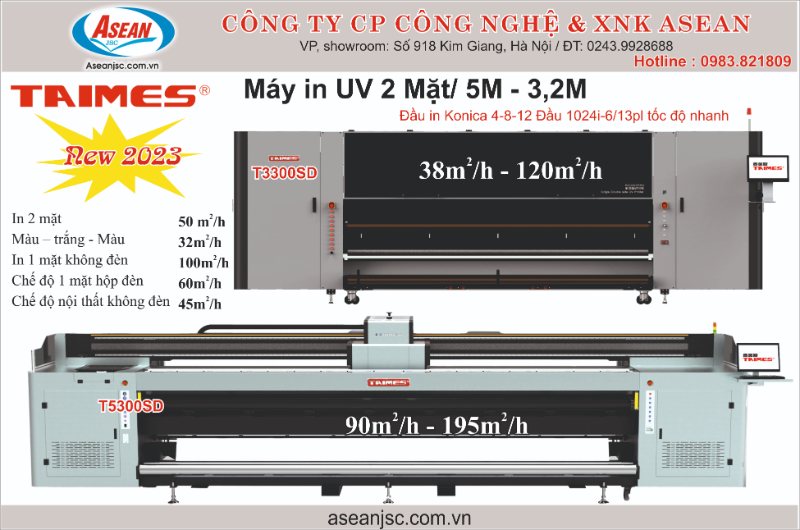 Nếu bạn đang tìm kiếm máy in UV 2 mặt TAIMES 5300SD chính hãng với giá tốt nhất và dịch vụ hậu mãi uy tín, hãy liên hệ ngay Công ty Cổ phần ASEAN – đơn vị phân phối máy in kỹ thuật số hàng đầu Việt Nam. Tại aseanjsc.com.vn, bạn sẽ được tư vấn chuyên sâu, hỗ trợ kỹ thuật tận nơi và bảo hành chính hãng 12 tháng. Đội ngũ kỹ sư giàu kinh nghiệm của ASEAN JSC luôn sẵn sàng giúp bạn lựa chọn cấu hình phù hợp, tối ưu hiệu suất và chi phí vận hành. Liên hệ ngay hôm nay để nhận báo giá ưu đãi và trải nghiệm công nghệ in UV tiên tiến nhất!