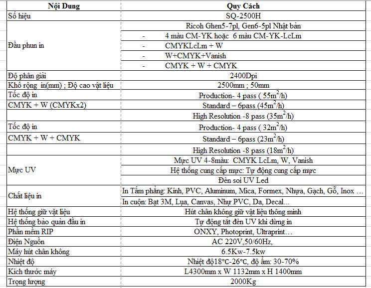 - Máy sử dụng mực in UV cao cấp nhập khẩu: Nhật, Hàn quốc, Mỹ đem đến sản phẩm chất lượng vượt trội và độ bền cao về màu sắc bản in cũng như tăng độ bền cho đầu phun, 02 đèn UV Led soi vật liệu khô ngay sau khi in xong.